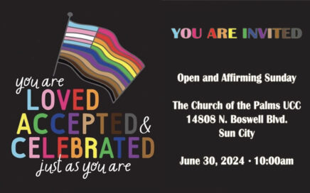 Celebrate Pride in Sun City Location: The Church of the Palms 14808 N. Boswell Blvd. Sun City, AZ, 85351 Date: Sunday, June 30, 2024 Time: 10:00am