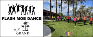 Grand Dance instructors Claire (choreographer) and Valerie led their dance troops, from the Dance Fit Class and the Grandettes, to perform a Flash Mob Dance during a very busy Wednesday outdoor concert at the Adobe Courtyard. When the band members had a brief paused, the Flash Mob Dancers started their “surprise” dance routine.