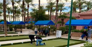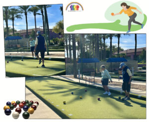 These pics are from a group of our lady members who play bocce sometimes on Sundays but not every. We may get 8 participants. On this day there was Susie, Cheri, Lynn and Sandy who played on one court. And me (Roxie), Vicki, Renee and Judy on another court. It’s always a fun time. I snapped a couple quick photos.