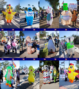 ‘Protesters wore inflatable costumes at No Kings rallies to use humor and absurdity as a political tool, countering the narrative that they were violent extremists by appearing playful, deflating tension, and making it difficult for authorities to portray them as a threat, as seen with the viral Portland frog and other animal suits. This tactic, inspired by earlier protests, drew attention, kept the mood light, and emphasized the peaceful nature of their dissent against the Trump administration.’