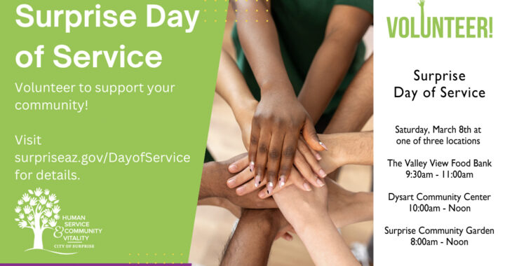 The City of Surprise is seeking volunteers for our March Day of Service event.