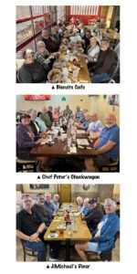 A consistent group of folks gather the first Thursday of each month at 9 a.m. for breakfast. In addition to the places shown we have been to Maple & Rye, Richi’s Diner and Betty’s Rooste. We are always looking for new places that can accommodate us. It’s a great time for catching up.